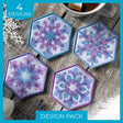 This coordinated design pack features four snowflake coaster designs created using thoughtful color theory and efficient stitching. Each design uses a limited number of color changes to achieve beautiful depth, balance, and visual interest through layered shapes and clean symmetry. Perfect for winter table decor, giftable projects, and quick seasonal stitching.